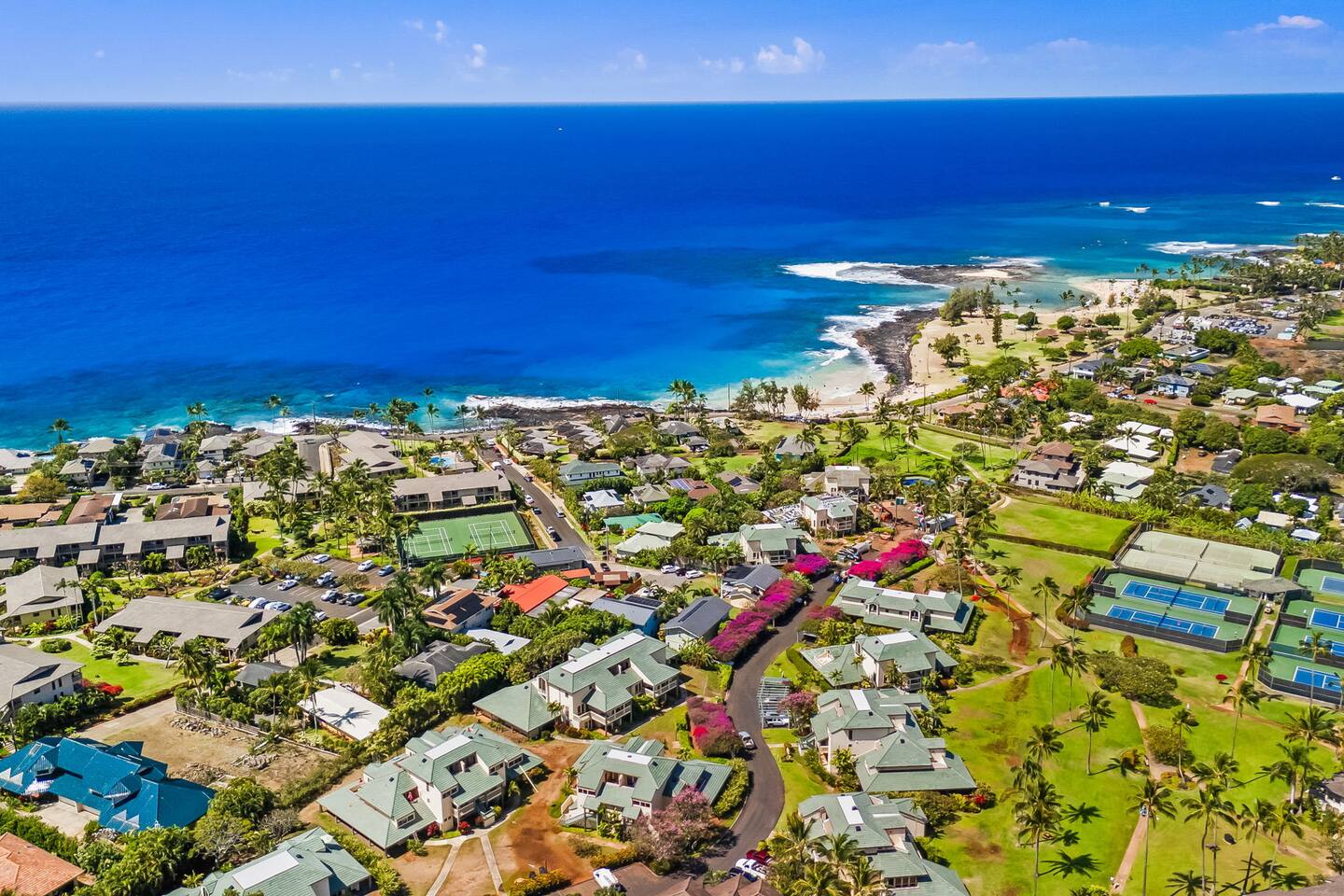 Your Poipu getaway begins at Manualoha Dream- a bright, spacious 3 bedroom, 3.5 bathroom retreat located along the lush Poipu Kai greenbelt, just a short walk to world famous Poipu Beach. With brand new split AC throughout, two levels of living space, access to two pools and a jacuzzi, this condo offers the perfect blend of comfort, convenience, and island relaxation. HIGHLIGHTS -3 large bedrooms each with own bathroom -Brandnew split AC in every area for comfortable, cool stay -Updated space -Private outdoor patio with nearby BBQ -Peaceful upstairs lanai -Fully stocked kitchen -Beach gear included (Chairs, umbrella, towels and cooler) RESORT AND LOCATION - Beautiful Poipu Kai -Two resort style pools + jacuzzi -Restuarants, shops, playground, tennis, pickleball, and scenic trails nearby PERFECT FOR -Families, couples traveling together or multigenerational groups, or anyone who wants walkability, space, and cool, comfortable place to unwind after exploring Kauai. RELAX, RECHARGE AND ENJOY AN UNFORGETTABLE POIPU VACATION AT MANUALOHA DREAM